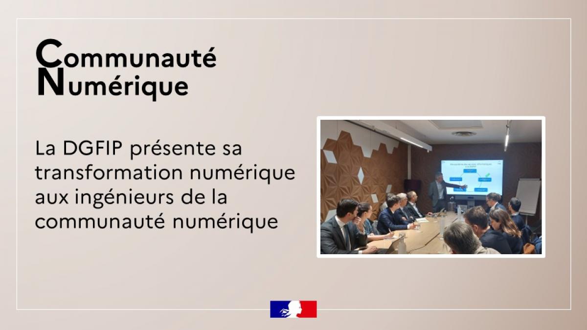 Communauté de compétences Temps de lecture : 1 minute La DGFIP présente sa transformation numérique aux ingénieurs de la communauté numérique La Direction Générale des Finances Publiques (DGFiP) a accueilli la communauté numérique des ingénieurs des grands corps techniques de l’État pour un échange riche autour de sa transformation numérique. Cette immersion a permis de découvrir des exemples concrets et de s’enrichir des retours d’expérience. Partager la page Partager sur Facebook - nouvelle fenêtre Partager sur Twitter - nouvelle fenêtre Partager sur Linked In - nouvelle fenêtre Partager par email - nouvelle fenêtre Copier le lien dans le presse-papier Benoît Rouppert, délégué à la transformation numérique, a présenté les principaux chantiers numériques de la DGFiP, notamment : Le Schéma directeur du numérique 2025, qui fixe les priorités stratégiques de la DGFiP en matière de numérique, mais aussi les grands principes à mettre en œuvre (utilisateur au centre, maîtrise des données, innovation, ...). L'intégration de l'intelligence artificielle dans les processus métiers, avec un focus sur l'assistant IA actuellement en expérimentation. Parmi les objectifs poursuivis : simplifier le travail des agents et rendre les réponses techniques plus accessibles aux usagers. Des échanges enrichissants sur les défis et les opportunités de la modernisation de l'administration, où la technologie se met au service de l'efficacité et de la proximité avec les citoyens.Un moment précieux pour renforcer les liens entre les acteurs du numérique public et partager les bonnes pratiques. Pour en savoir plus sur la communauté numérique