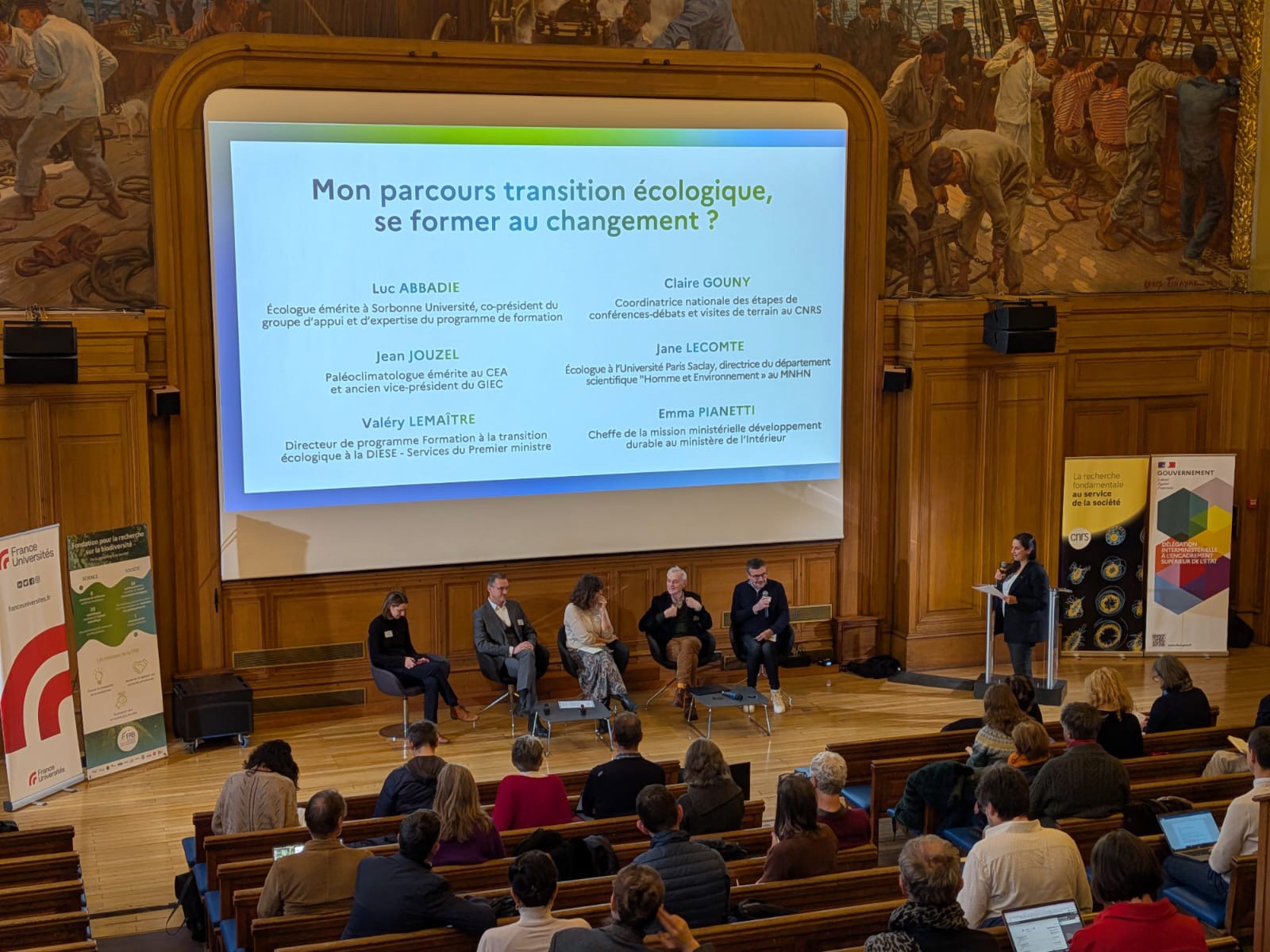 La transition écologique Temps de lecture : 3 minutes Partager la page Partager sur Facebook - nouvelle fenêtre Partager sur Twitter - nouvelle fenêtre Partager sur Linked In - nouvelle fenêtre Partager par email - nouvelle fenêtre Copier le lien dans le presse-papier Dans cette rubrique Autour des grands enjeux La transition écologique La transformation numérique L’intelligence artificielle (IA) En 2022, le Gouvernement a engagé un vaste programme de formation des cadres supérieurs de l’État à la transition écologique. Le dispositif a été présenté le 11 octobre 2022 en présence du ministres de la transformation et de la fonction publiques, du ministre de la transition écologique et de la cohésion des territoires et du ministre de l’enseignement supérieur et de la recherche. Son déploiement est désormais achevé et fait l’objet d’une évaluation. Pour l’avenir, les formations initiales des cadres supérieurs intègrent toutes des formations à la transition écologique et les cadres supérieurs d'ores et déjà formés peuvent poursuivre et approfondir leurs enseignements à travers un certain nombre de ressources. Le programme de formation des cadres supérieurs Le dispositif se composait de deux phases : 2022-2024, formation des cabinets et des directeurs d'administration centrale ; automne 2023-juin 2025, formation des 25 000 cadres supérieurs de l’État. Le parcours a été conçu en s'appuyant sur un groupement d’appui et d’expertise scientifique, constitué de chercheurs relevant des différents domaines des sciences de l’environnement, chargé de garantir le contenu scientifique, et a fait l'objet d'une expérimentation au sein de la région Auvergne-Rhône-Alpes. Son contenu se structurait autour des trois grandes crises environnementales (changement climatique, effondrement de la biodiversité, tensions sur les ressources naturelles) et suivait une progressivité pédagogique allant de la prise de conscience au passage à l’action. La formation organisée en cinq étapes alternait ateliers (sensibilisation aux défis écologiques, connaissance des leviers d’action, passage à l’action), et conférences-débats avec des scientifiques (diminution des ressources naturelles, effondrement de la biodiversité, crise climatique) et une visite de terrain. L’objectif était d’établir un dialogue entre professionnels de la science et professionnels de l’action publique, de partager l’analyse scientifique des changements environnementaux en cours et des solutions envisageables pour une transition écologique des sociétés efficace et équitable. La délégation interministérielle à l’encadrement supérieur de l’État (DIESE) – avec le concours du Secrétariat général à la planification écologique (SGPE) – assurait le pilotage du déploiement du dispositif vers les cadres supérieurs et dirigeants de l'État. Elle mobilisait les services des ministères et en s’appuyant sur le Commissariat général au développement durable (CGDD), la délégation interministérielle à la transformation publique (DITP), la direction générale de l'administration et la fonction publique (DGAFP) et l’Institut national des services publics (INSP). La DGAFP est en charge du déploiement plus large vers l'ensemble des agents. Pour l'encadrement supérieur, 13 514 cadres auront suivi les deux premiers ateliers du parcours de formation à la transition écologique. Cela représente 52 % de l’objectif (75 % si on décompte les magistrats judiciaires). 22 500 agents dont 10 000 cadres supérieurs auront suivi une des 416 conférences-débats dont 393 en présentiel, organisées par le CNRS en métropole et Outre-Mer. 40 conférences sont programmées d’ici fin 2025. Ce dispositif a mobilisé 431 intervenants scientifiques. 3100 cadres supérieurs auront participé à une des 250 visites de terrain organisées par le CNRS. Pour poursuivre et approfondir la formation Le CNRS met en place en 2025 les Webinaires Curieux : une programmation de webinaires interrogeant des sujets spécifiques de la transition écologique avec des approfondissements thématiques et des approfondissements transversaux : Pourquoi le passage à l'action est-il difficile et quels sont les biais en jeu dans l'inaction écologique ? Combien coûte l'inaction écologique ? Sommes-nous trop nombreux sur Terre pour réussir la transition ? Pourquoi et comment s'outiller face au climatodénialisme et à la désinformation scientifique ? Comment conduire le changement au sein des administrations publiques ? Etc. Pour visionner les Wébinaires Curieux du CNRS Découvrir les dernières actualités relatives à la transition écologique Voir toutes les actualités Science et transition écologique : bilan et futurs enjeux de la formation à la transition écologique Le colloque du CNRS – “La contribution scientifique au programme de formation à la transition écologique : bilan et futurs enjeux”, organisé avec le soutien de France Universités, de la DIESE et de la Fondation pour la recherche sur la biodiversité, a permis de revenir collectivement sur... Intégrer les enjeux de la transition écologique, un impératif pour les cadres dirigeants Pour leur 4ème module, conçu en collaboration avec La Fabrique d'Innovation pour les transitions des ministères chargés de l’aménagement du territoire et de l’écologie, les auditeurs du Cycle des hautes études du service public (CHESP) ont travaillé sur la place des enjeux écologiques...